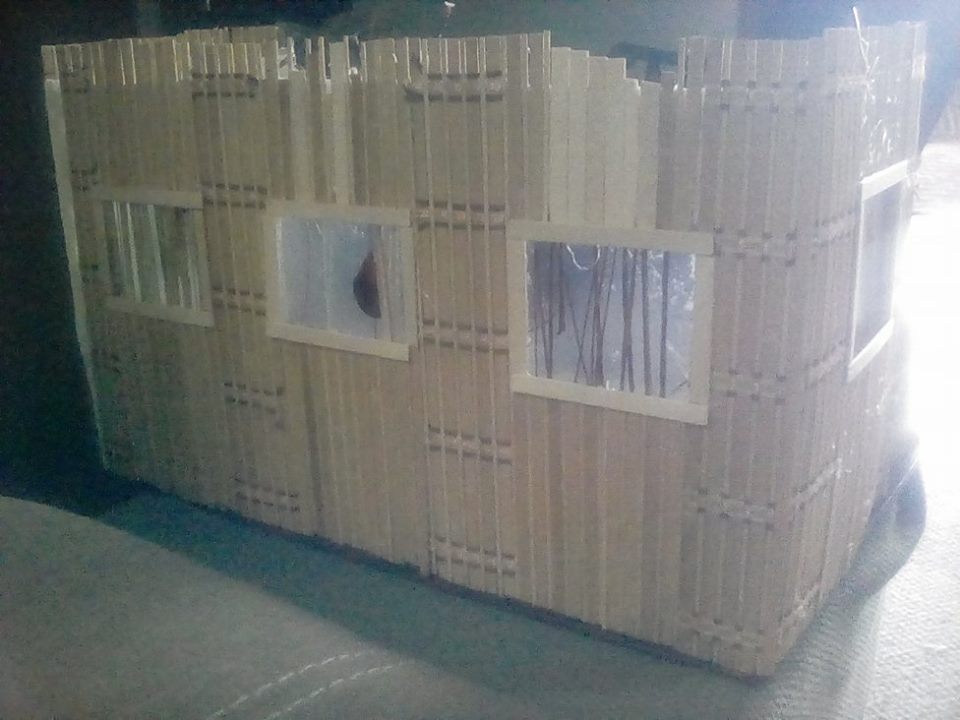 Here's the inside, without any furniture or accessories. The top of the walls where the bamboo siding looks rough now, but once the ceiling goes on, and a roof, hopefully they won't show at all.